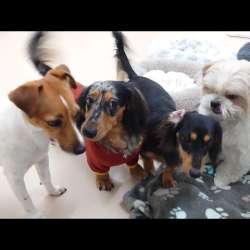 ミニチュアダックスのルイ(♂4歳)とカニンヘンダックスのリン(♀3歳)とのニチゾウです所有者: Kodama更新: 更新回数: 93回